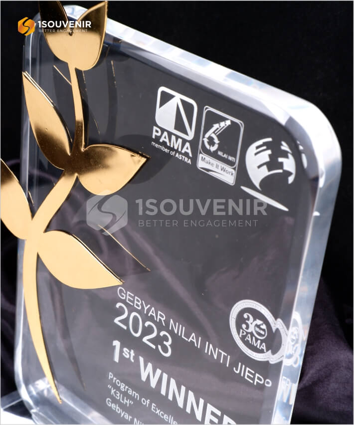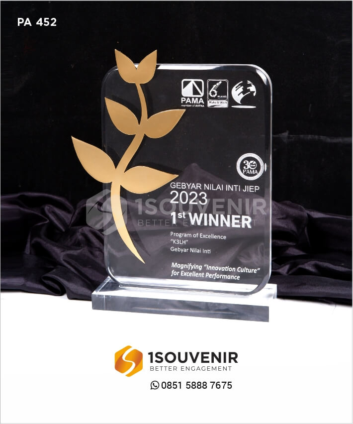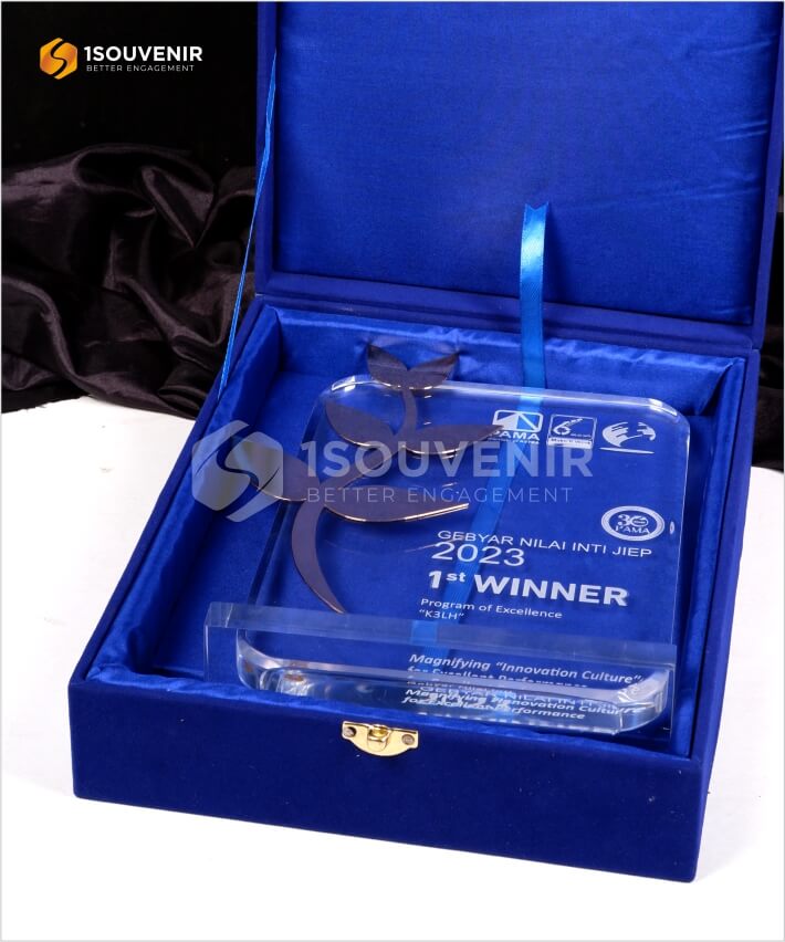 Plakat 1st Winner Program Excellence K3LH merupakan plakat akrilik custom yang dirancang untuk memberikan pengakuan atas prestasi luar biasa dalam Program Keunggulan Keselamatan, Kesehatan, dan Lingkungan Hidup (K3LH). Plakat ini menampilkan desain yang inovatif dan profesional, dengan simbol dan teks yang merepresentasikan keberhasilan dalam program K3LH, diukir secara presisi pada akrilik berkualitas tinggi. Tampilannya yang elegan dan informatif menjadikan plakat ini simbol keberhasilan dan komitmen terhadap standar K3LH.