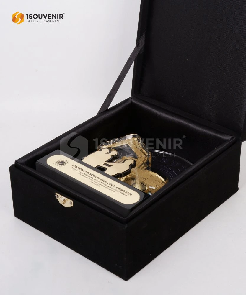 Plakat Arutmin Partnership Excellence Award merupakan plakat akrilik berkualitas tinggi dengan desain unik yang menggambarkan elemen industri tambang. Detail ukiran dan perpaduan material premium menjadikannya simbol apresiasi yang eksklusif.