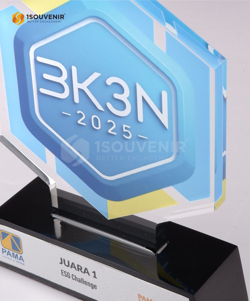 Plakat Juara ESG ini dirancang dengan desain modern dan warna menarik yang merepresentasikan semangat keberlanjutan. Dengan material akrilik berkualitas tinggi, plakat akrilik ini memberikan kesan profesional dan menjadi simbol kebanggaan bagi penerima penghargaan.