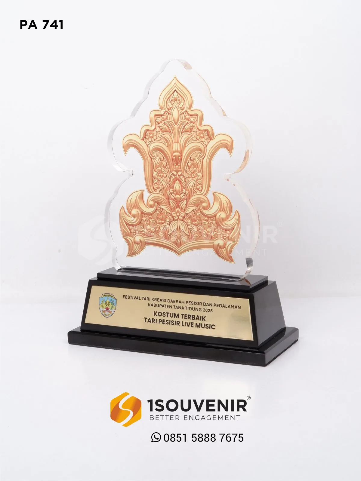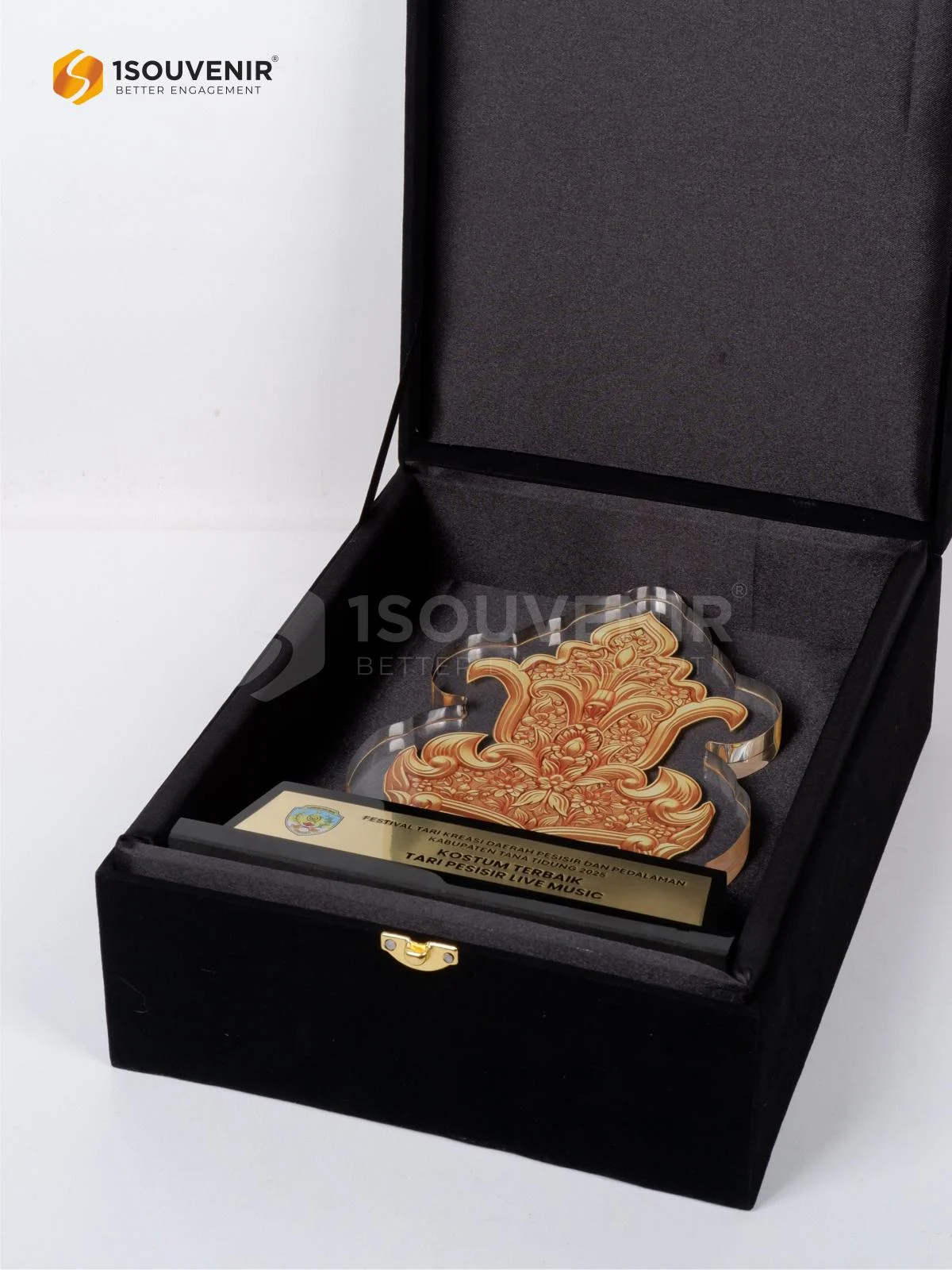 Plakat Festival Tari Kreasi ini diberikan sebagai penghargaan Kostum Terbaik Tari Pesisir Live Music. Plakat akrilik ini menjadi simbol apresiasi atas detail, kreativitas, dan dedikasi yang menjadikan kostum bagian penting dari kekuatan pertunjukan di atas panggung.