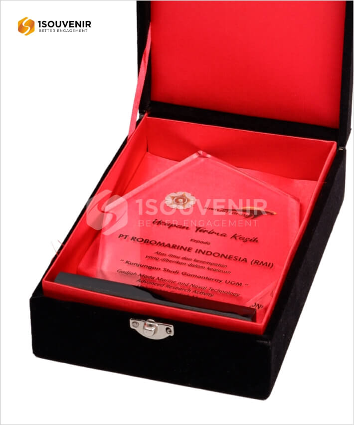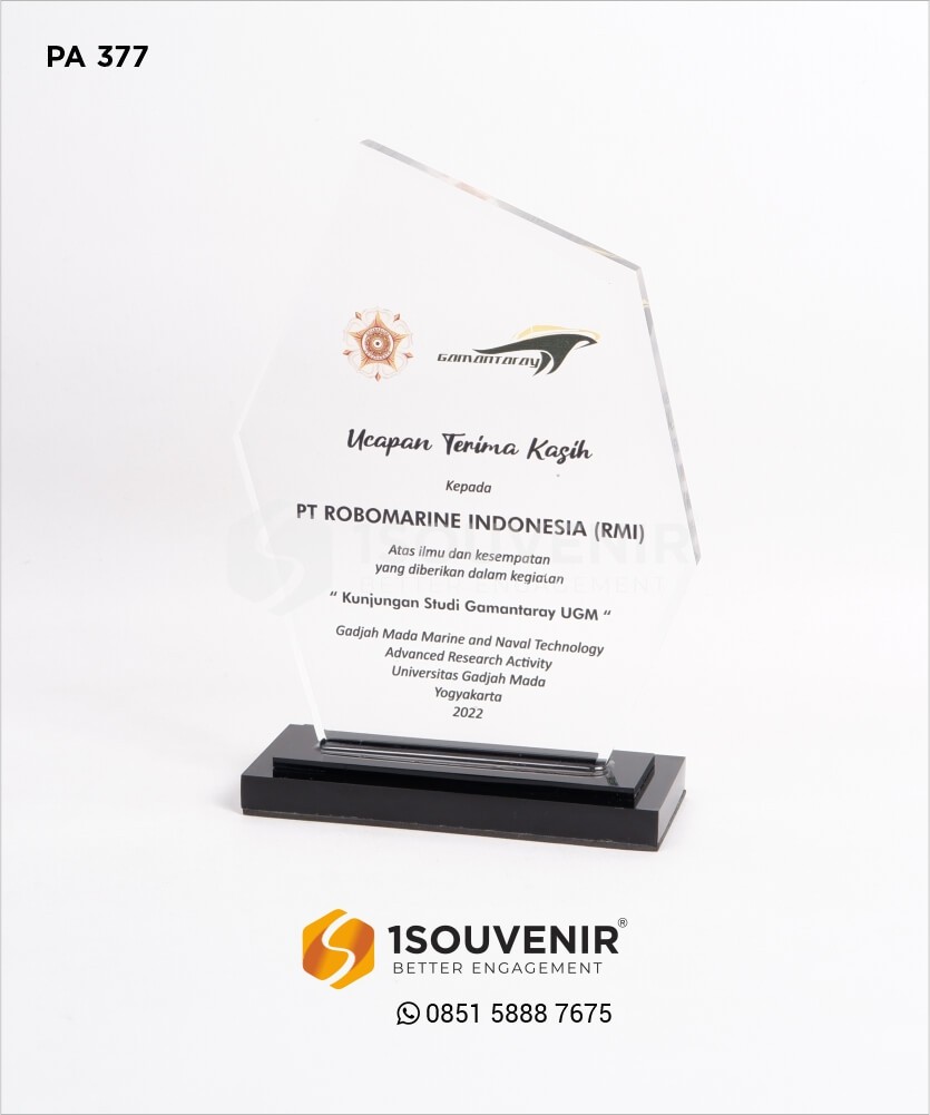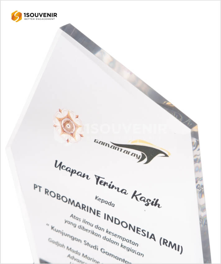 Plakat Gadjah Mada Marine and Naval Technology merupakan plakat akrilik custom yang dirancang secara eksklusif untuk menghormati prestasi dan inovasi di bidang teknologi maritim dan angkatan laut. Plakat ini secara artistik menampilkan elemen-elemen kunci dari dunia kemaritiman, dengan desain yang elegan dan simbolisme yang kaya. Setiap detail dari plakat ini dirancang untuk menonjolkan kecanggihan dan pencapaian dalam teknologi laut.