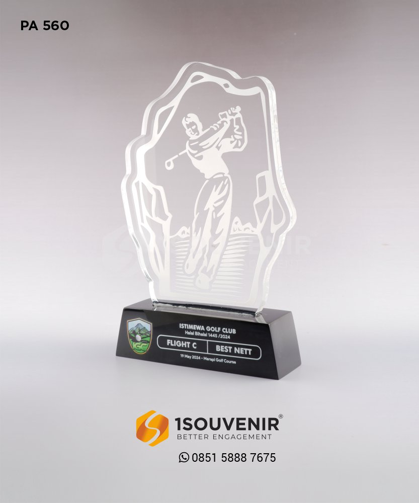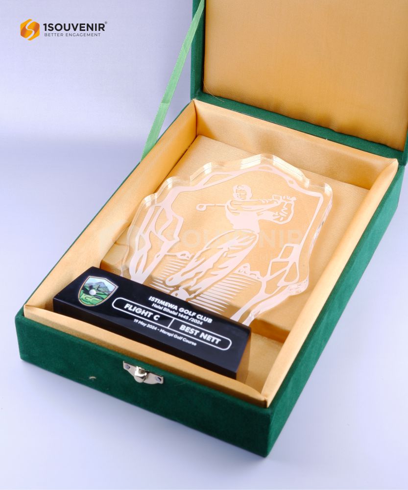Plakat Golf Club secara khusus dipesan oleh Merapi Golf Course. Plakat akrilik ini dihadirkan dalam event Istimewa Golf Club dalam acara Halal Bihalal 1445/2024. Pemain yang meraih Best Nett akan mendapatkan plakat ini sebagai bentuk penghargaan. Ornamen plakat yang sesuai dengan kompetisi golf membuatnya relevan dan berkesan sebagai souvenir kenang-kenangan.