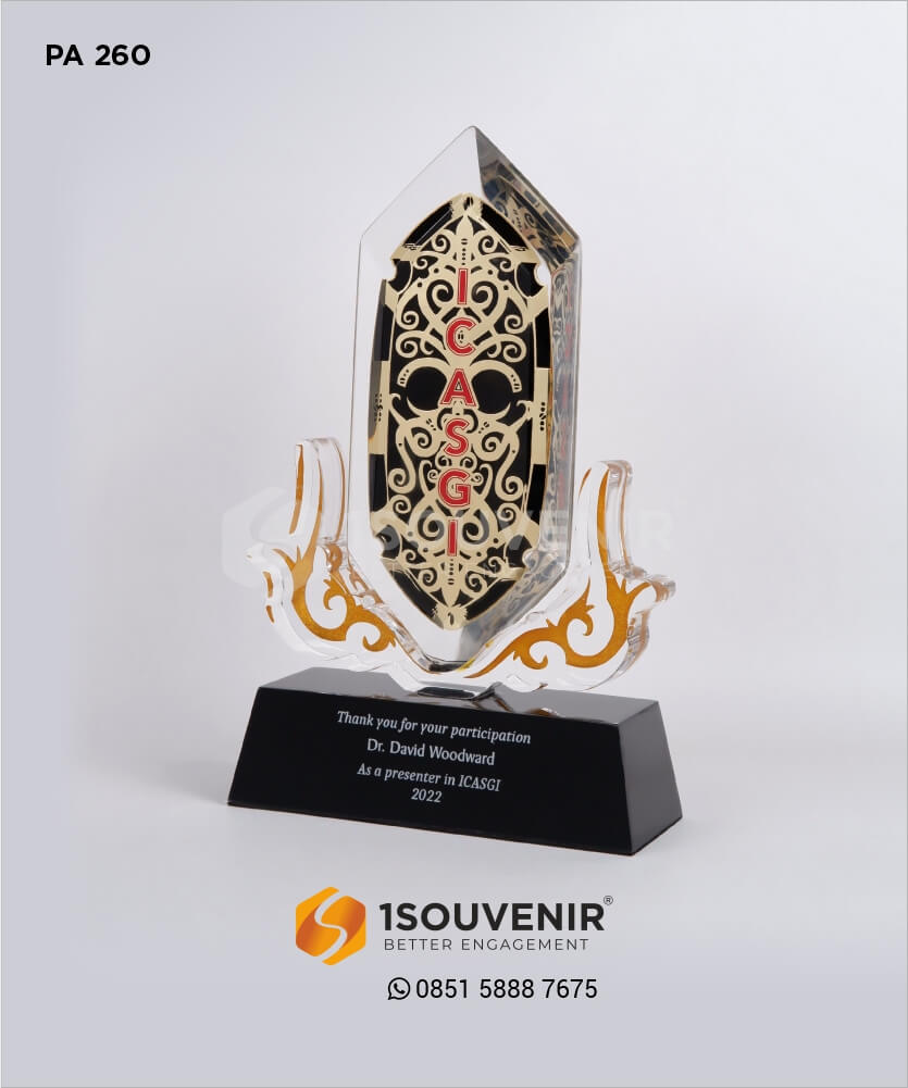 1SOUVENIR telah melayani pemesanan souvenir sejak tahun 2007. Kami selalu memastikan souvenir yang kami buat menggunakan bahan yang berkualitas dan melalui QC (Quality Control). Jika Anda tertarik ingin membuat plakat dengan desain seperti plakat akrilik ICASGI 2022 ini, Anda bisa menghubungi customer service kami.