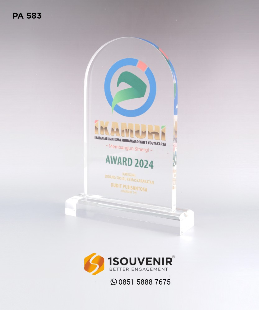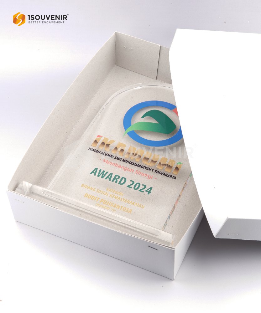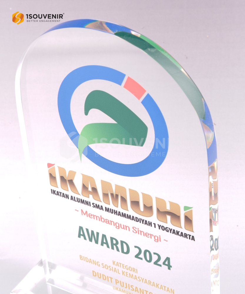 Plakat awards IKAMUHI terbuat dari akrilik bening, yang memberikan kesan elegan dan modern. Plakat akrilik ini dirancang khusus sebagai simbol penghargaan yang penuh makna, sekaligus memperkuat hubungan antara anggota dan organisasi.