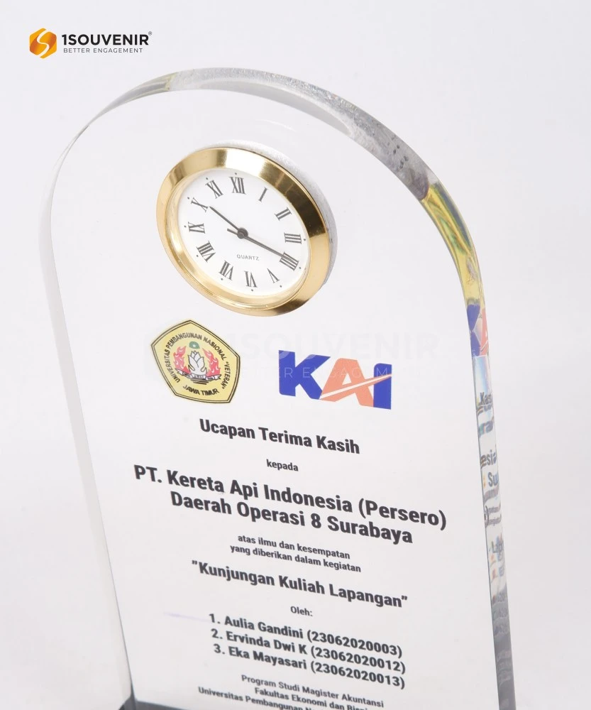 Plakat Akrilik Jam Kunjungan Kuliah Lapangan ke PT KAI dari UPNV Jawa Timur