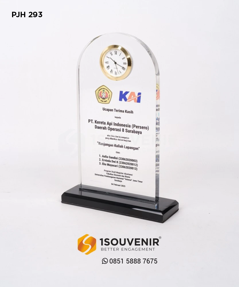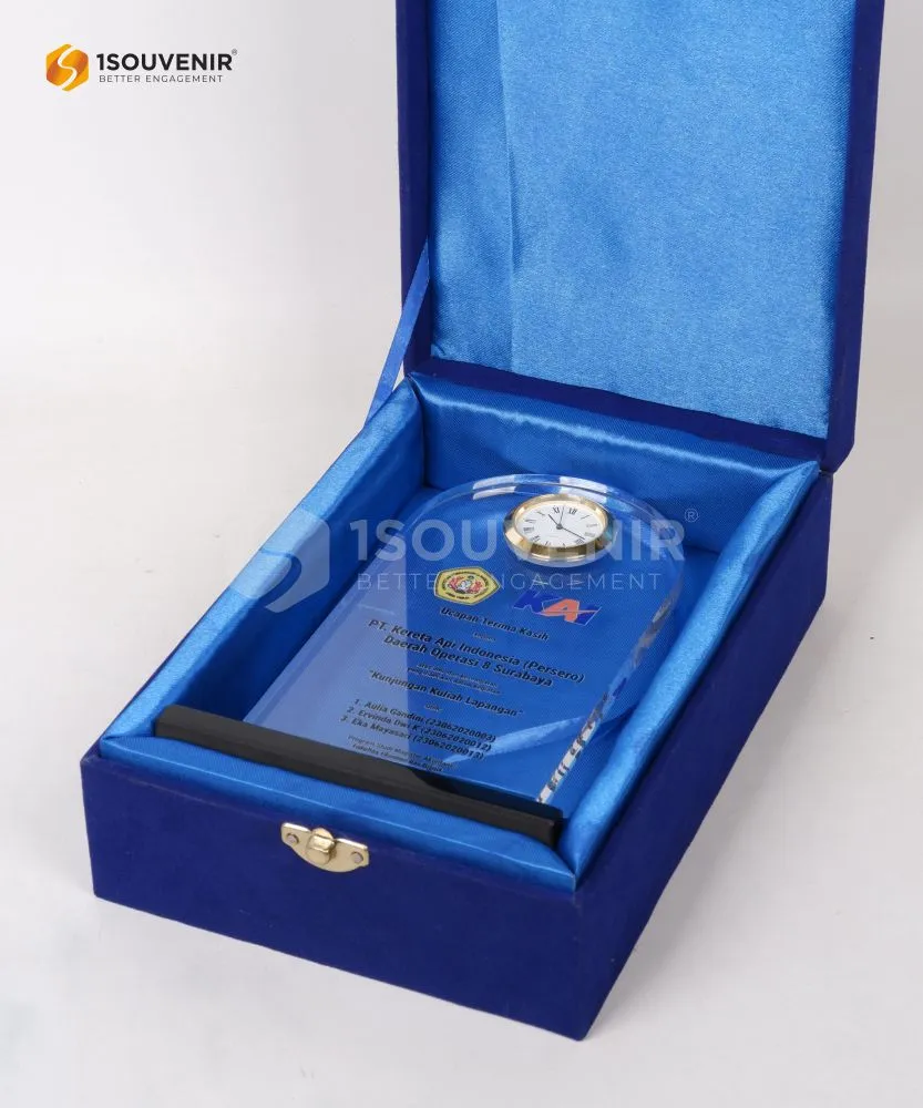 Wujudkan penghargaan terbaik dengan plakat jam eksklusif dari 1Souvenir. Kami menghadirkan desain inovatif yang dapat disesuaikan dengan kebutuhan acara dan identitas lembaga Anda.