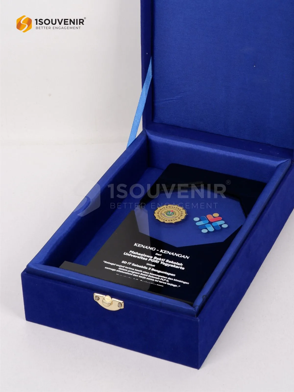 Sebagai tanda terima kasih dan kenangan indah dari perjalanan ini, dihadirkanlah plakat Universitas PGRI Yogyakarta. Desain elegan dengan sentuhan modern menjadikannya simbol apresiasi sekaligus pengingat hangat akan momen bersejarah tersebut.