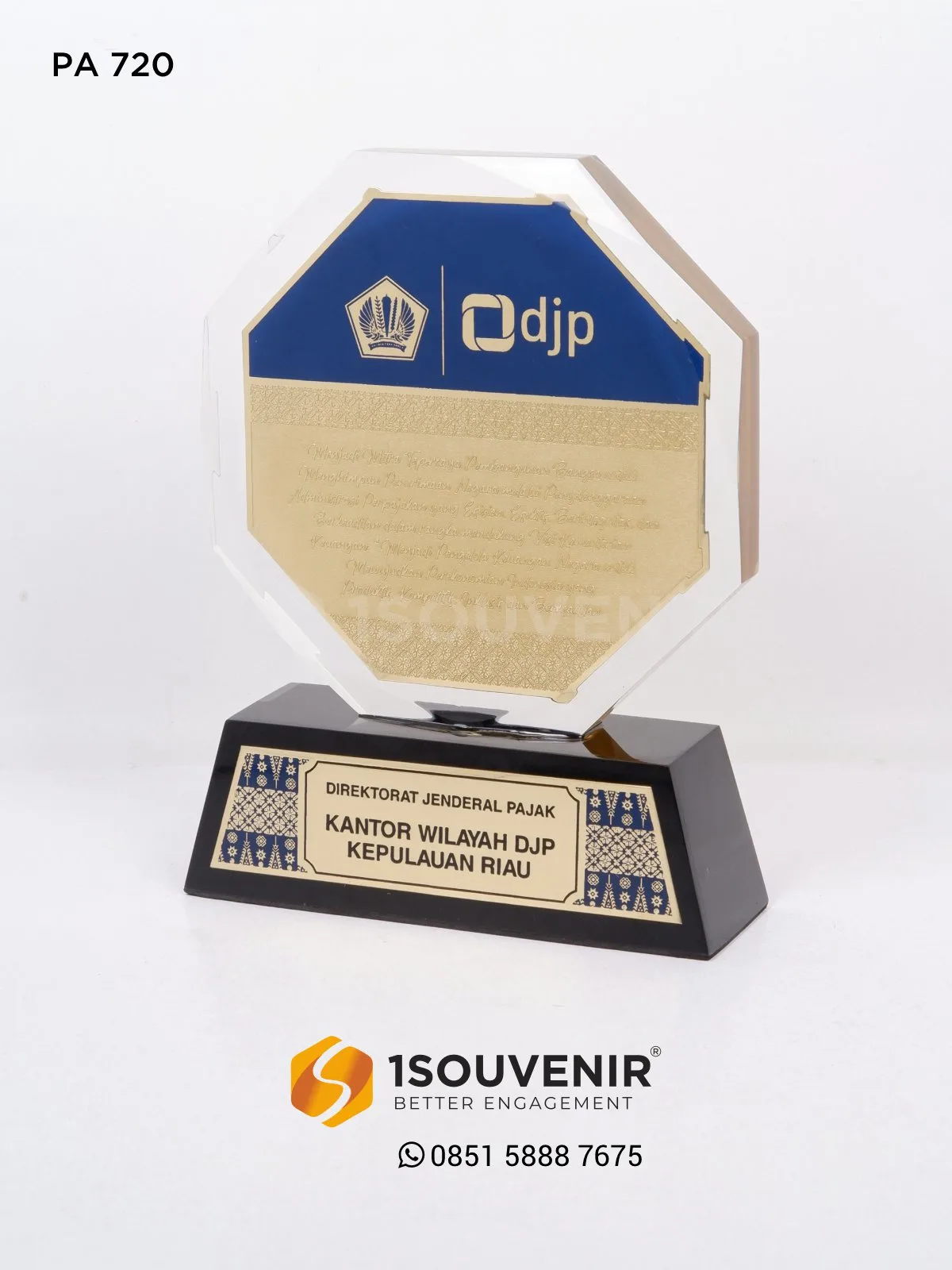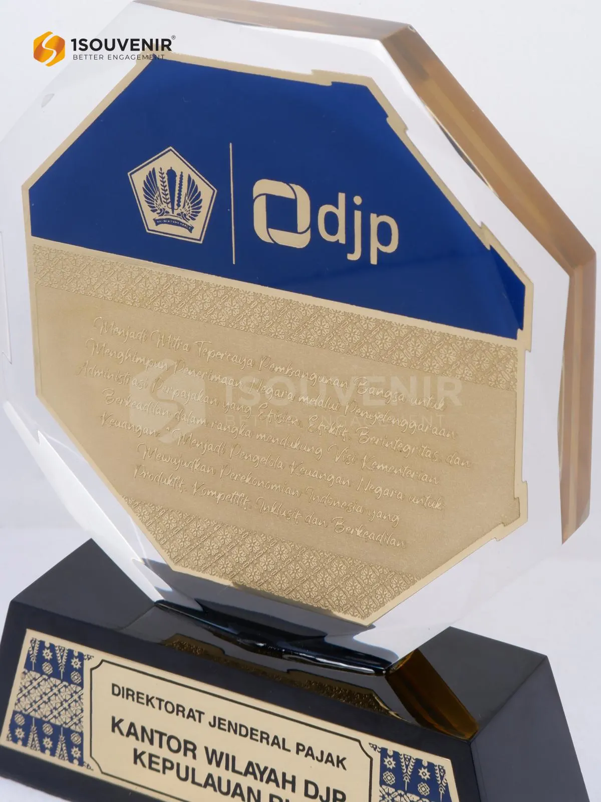 Sebagai simbol penghargaan atas kontribusi dan kerja sama yang solid, hadir Plakat Dirjen Pajak Kepri yang elegan. Plakat akrilik ini bernuansa modern dengan sentuhan warna emas dan biru yang melambangkan kepercayaan serta kehormatan.