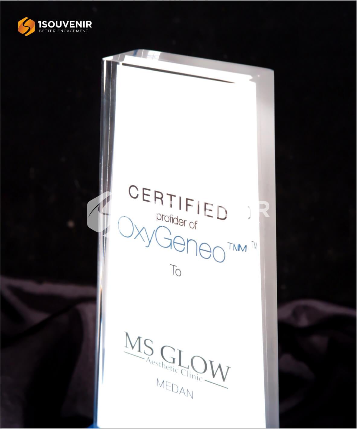 1SOUVENIR telah melayani pemesanan souvenir sejak tahun 2007. Kami selalu memastikan souvenir yang kami buat menggunakan bahan yang berkualitas dan melalui QC (Quality Control). Jika Anda tertarik ingin membuat plakat dengan desain seperti plakat akrilik MS Glow Certified ini, Anda bisa menghubungi customer service kami.