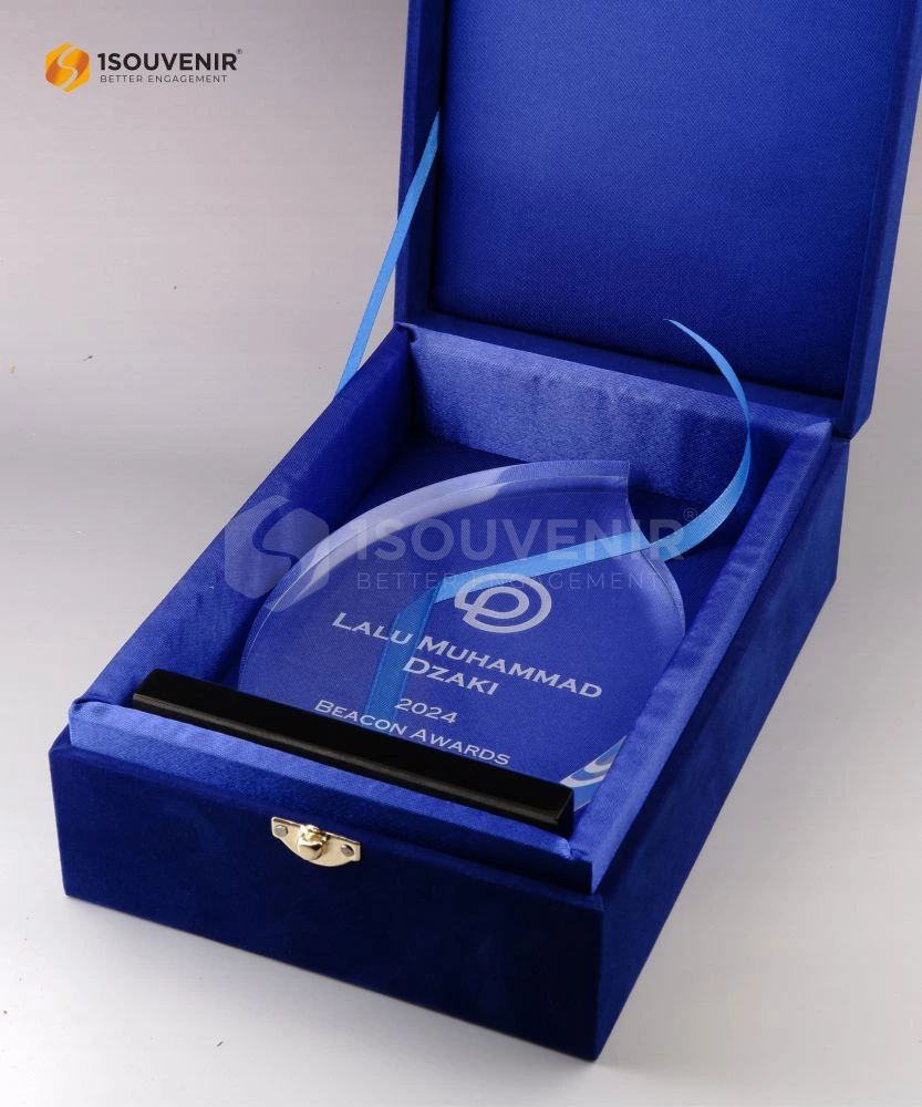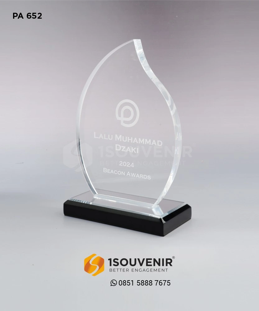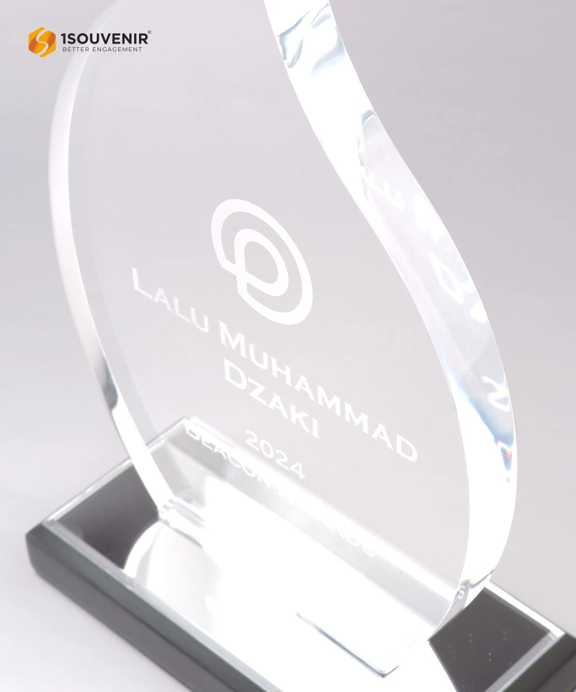 Plakat Beacon Award 2024 didesain dengan material akrilik berkualitas tinggi, menghadirkan tampilan transparan yang elegan dengan bentuk unik. Finishing halus dan desain modern menjadikan plakat akrilik ini pilihan ideal sebagai simbol penghormatan dalam acara penghargaan bergengsi.