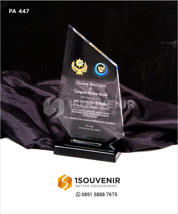 Plakat Politeknik Ahli Usaha Perikanan Jakarta adalah plakat akrilik unik yang dirancang khusus untuk memberikan pengakuan kepada mahasiswa, dosen, dan staf di Politeknik Ahli Usaha Perikanan Jakarta. Plakat ini menampilkan desain yang elegan dan berkelas, dengan logo institusi yang diukir dengan ketelitian dan detail pada akrilik berkualitas tinggi. Tampilannya yang profesional dan inspiratif menjadikan plakat ini simbol prestasi dan dedikasi dalam bidang pendidikan perikanan.