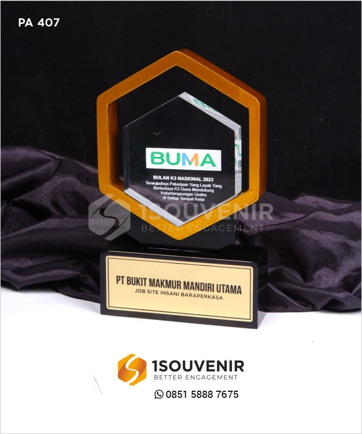 Plakat ini sempurna sebagai penghargaan korporat atau souvenir spesial. Jika Anda tertarik untuk memperoleh atau mengustomisasi Plakat PT Bukit Makmur Mandiri Utama, silakan hubungi customer service kami. Kami berkomitmen untuk menyediakan plakat yang tidak hanya unik secara visual tetapi juga mewakili nilai dan keunggulan perusahaan.