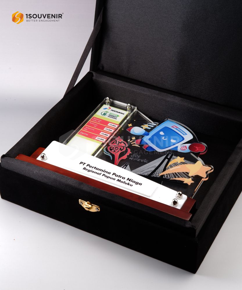 Plakat Pertamina Patra Niaga Papua ini dirancang dengan material akrilik berkualitas dan detail yang menarik, mencerminkan identitas perusahaan. Desainnya modern dan fungsional, cocok sebagai simbol penghargaan atau apresiasi. Plakat ini merupakan contoh sempurna produk berkualitas tinggi.