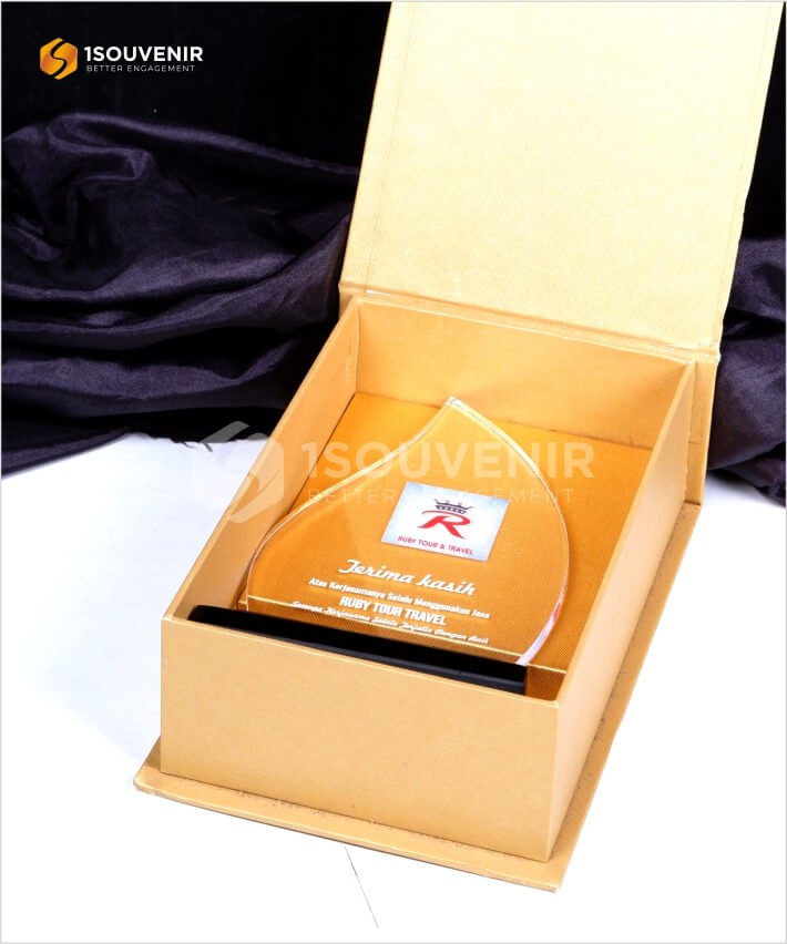 Plakat Ruby Tour & Travel adalah plakat akrilik unik yang dirancang untuk menghargai pencapaian luar biasa dan dedikasi dalam industri pariwisata. Plakat ini memiliki desain yang menawan dan mewah, dengan logo Ruby Tour & Travel yang diukir secara elegan pada akrilik berkualitas tinggi, menciptakan tampilan yang menarik dan profesional. Tampilannya yang modern dan dinamis menjadikan plakat ini simbol keberhasilan dan komitmen terhadap layanan pelanggan yang luar biasa.