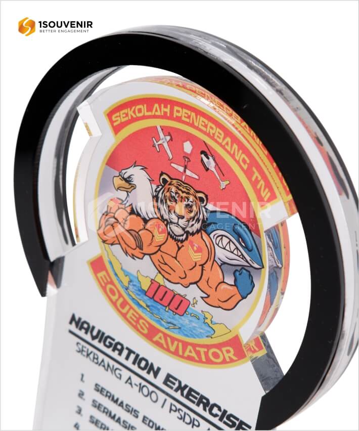 Plakat Sekolah Penerbangan TNI adalah plakat akrilik yang dirancang secara khusus untuk mengapresiasi dedikasi dan pencapaian di Sekolah Penerbangan TNI. Plakat ini menampilkan desain yang elegan dan simbolik, dengan emblem dan logo Sekolah Penerbangan TNI yang diukir dengan presisi dan kejelasan pada akrilik berkualitas tinggi. Tampilannya yang profesional dan mengesankan menjadikan plakat ini simbol kehormatan bagi para penerbang dan staf yang berprestasi.