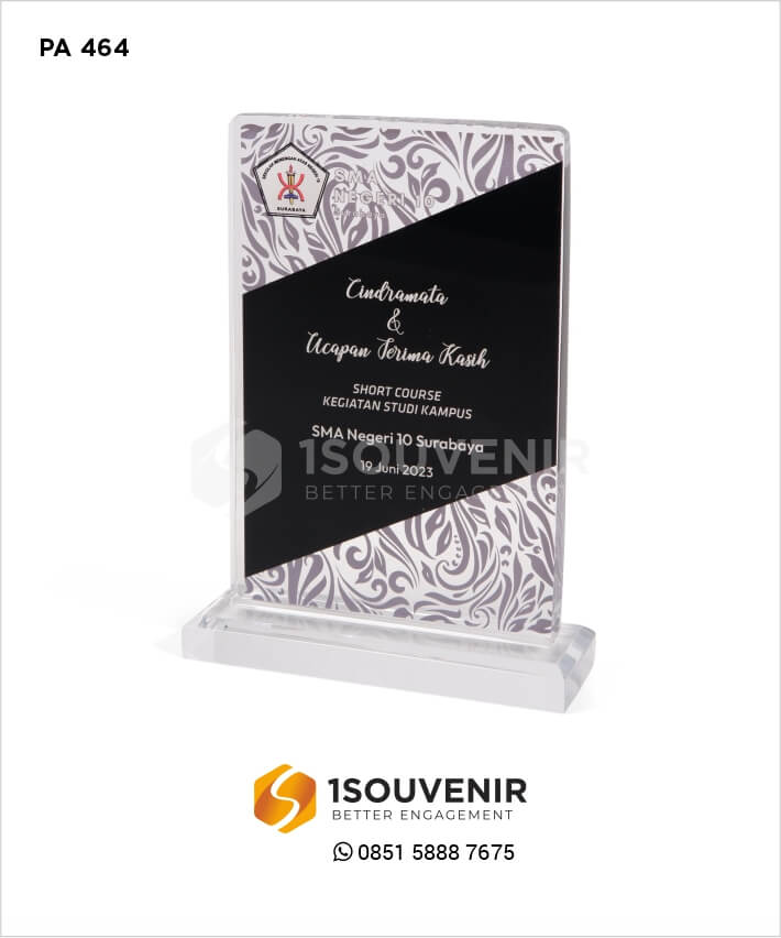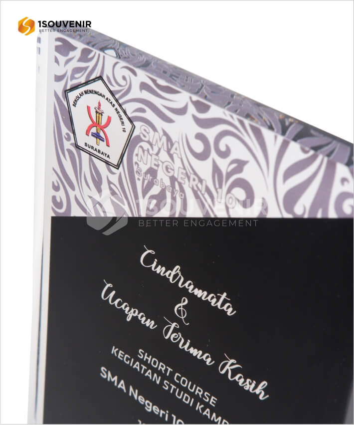 Plakat Akrilik Short Course SMA N 10 Surabaya adalah sebuah plakat akrilik elegan yang dirancang khusus untuk menghargai partisipasi dan pencapaian peserta dalam program Short Course di SMA N 10 Surabaya. Plakat ini menampilkan desain yang modern dan edukatif, dengan logo sekolah dan detail kursus singkat yang diukir dengan kejelasan pada akrilik berkualitas tinggi. Tampilannya yang rapi dan informatif menjadikan plakat ini simbol keberhasilan akademis dan dedikasi siswa.
