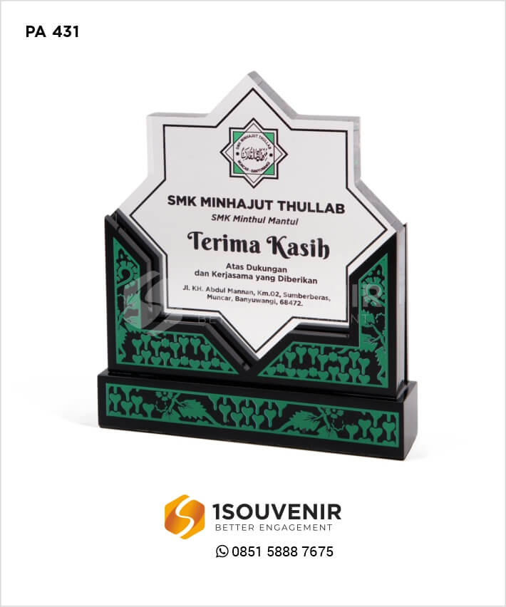 Dengan harga plakat akrilik yang terjangkau, plakat ini menawarkan nilai yang luar biasa bagi sekolah yang ingin mengakui dan merayakan kontribusi penting para anggotanya. Jika Anda tertarik untuk memperoleh atau mengkustomisasi Plakat SMK Minhajut Thullab, silakan hubungi customer service kami. Kami berkomitmen untuk menyediakan produk berkualitas yang mewakili prestasi dan kebanggaan sekolah. Kontak kami sekarang untuk konsultasi dan pemesanan, dan buatlah penghargaan sekolah Anda menjadi lebih berkesan dan bermakna.