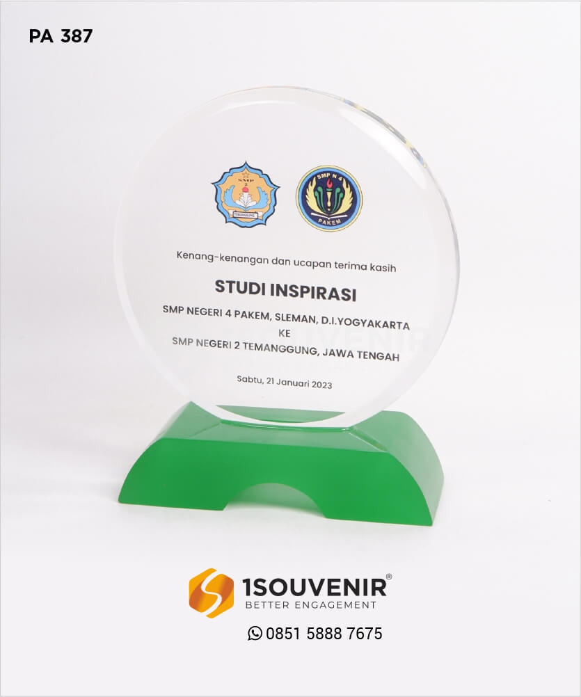 Plakat Studi Inspirasi SMP N 4 Pakem 2 merupakan plakat akrilik yang elegan dan inspiratif, dirancang khusus untuk merayakan dan menghargai upaya luar biasa dalam kegiatan studi dan inspirasi. Plakat ini menampilkan desain yang kreatif dan edukatif, dengan logo SMP N 4 Pakem yang diukir dengan detail yang halus dan jernih pada akrilik berkualitas tinggi. Desainnya yang menawan dan informatif menjadikan plakat ini pilihan ideal sebagai penghargaan untuk siswa, guru, atau peserta kegiatan.