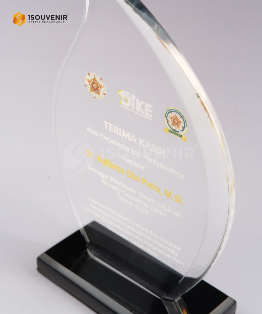 Plakat Akrilik Terima Kasih sebagai Reviewer Novelty Coaching Clinic 2024 merupakan penghargaan simbolis yang diberikan kepada para reviewer yang telah memberikan kontribusi penting dalam penyelenggaraan acara tersebut. Plakat akrilik ini dirancang dengan estetika yang elegan, menampilkan tulisan terima kasih dan detail acara dengan ketelitian yang tinggi, membuatnya menjadi kenang-kenangan yang berharga dan penuh makna.