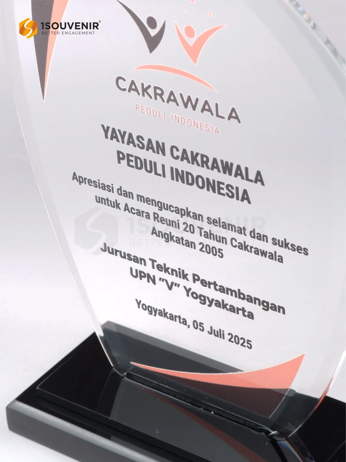 Ingin membuat plakat dengan desain khusus? Serahkan pada 1Souvenir yang siap membantu menciptakan plakat impian Anda dengan pelayanan profesional!