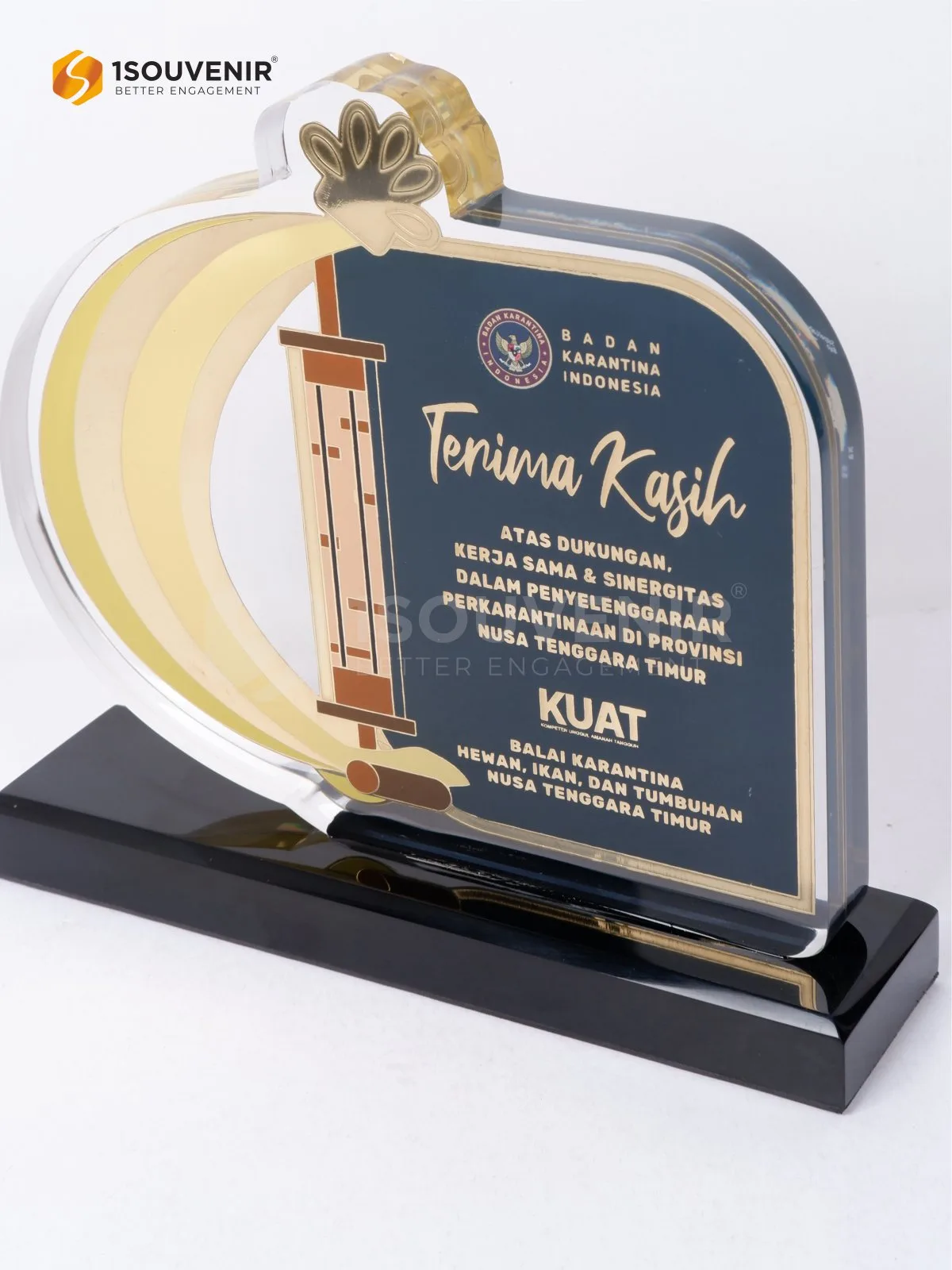 Ingin membuat plakat penghargaan serupa? 1Souvenir siap membantu Anda menciptakan kenang-kenangan bermakna dan profesional.