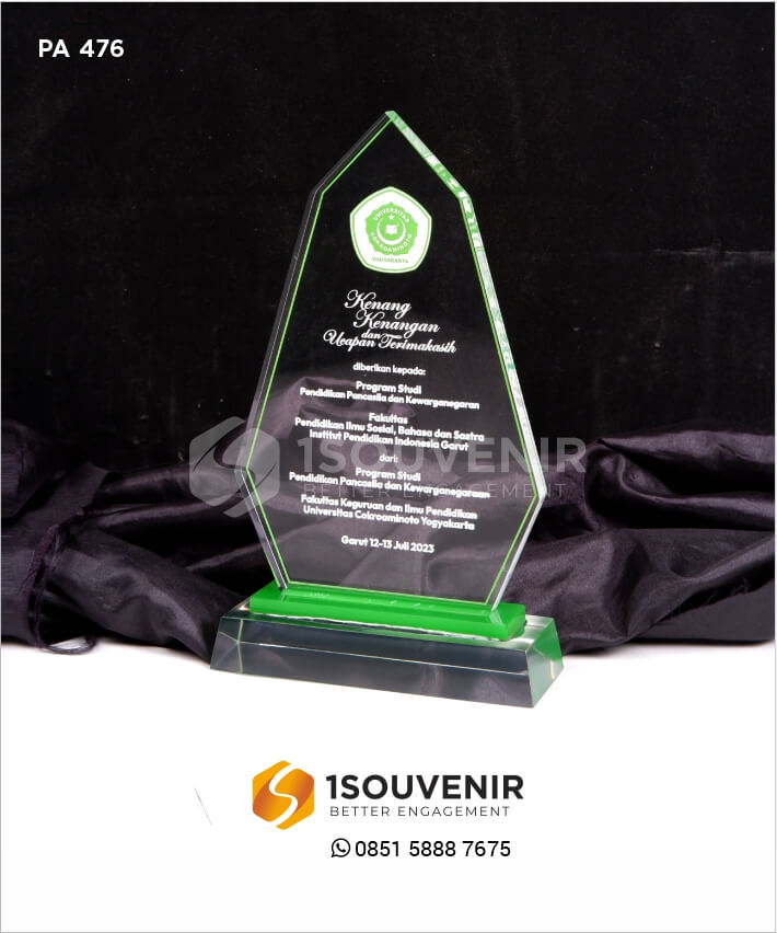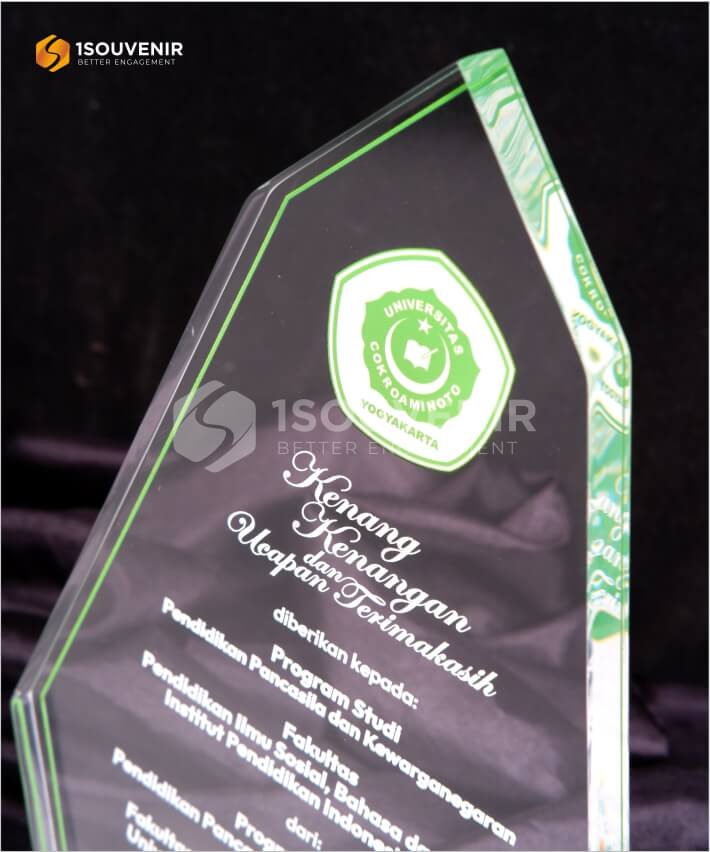 Dengan harga plakat akrilik yang kompetitif, plakat ini sangat cocok sebagai penghargaan untuk prestasi akademis, penghormatan untuk staf pengajar, atau sebagai kenang-kenangan dalam acara-acara penting universitas. Jika Anda tertarik untuk memperoleh atau mengustomisasi Plakat Akrilik Universitas Cokroaminoto, hubungi customer service kami. Kami berkomitmen untuk menyediakan plakat yang tidak hanya menarik secara visual, tetapi juga mewakili semangat akademis dan kecemerlangan. Kontak kami sekarang untuk konsultasi dan pemesanan, dan buatlah penghargaan universitas Anda menjadi lebih berkesan dan dihargai.